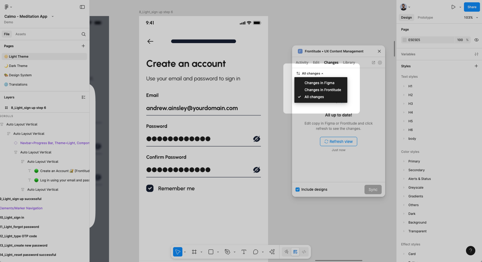 - Changes in Frontitude: Reflect changes made by writers or stakeholders in the Frontitude workspace back into the Figma designs with a single click.